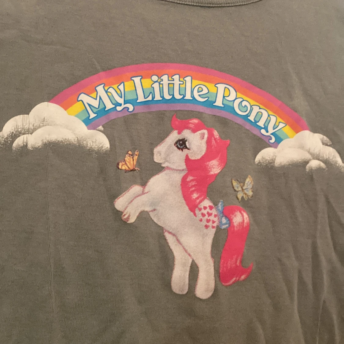 En baby tee med tryck av my little pony. Använd. Inga hål eller skador jag ser.