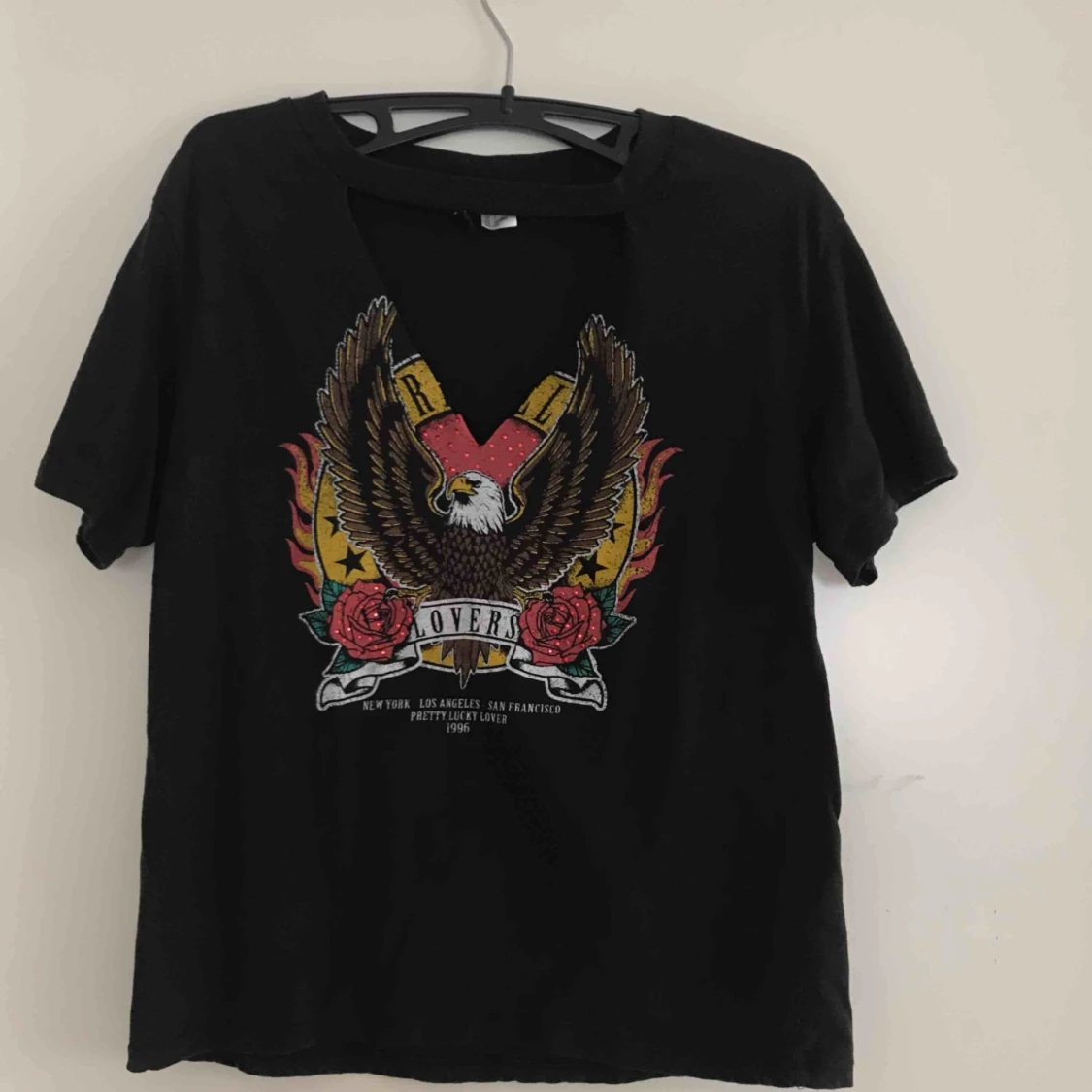 svart T-shirt med tryck, använd vid ett tillfälle och är precis som ny :)
