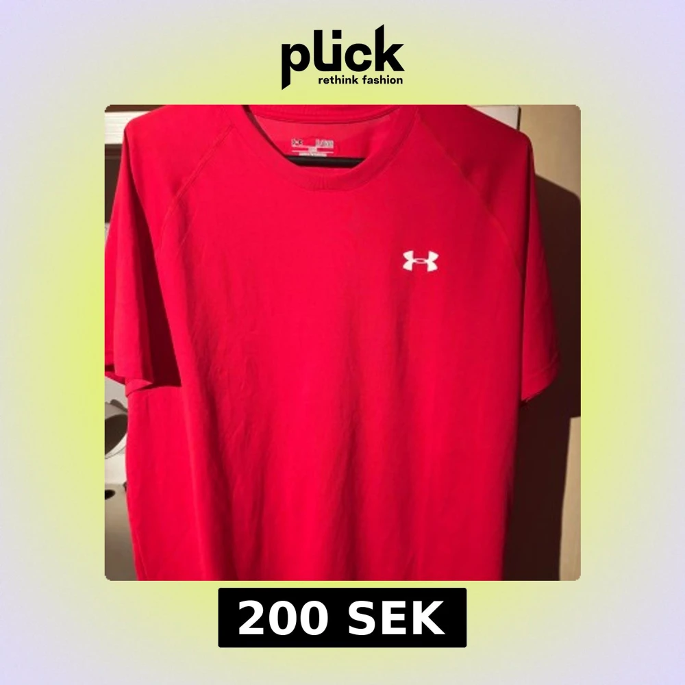 Säljer en röd t-shirt från Under Armour med klassisk logga på bröstet. T-shirten är kortärmad och har en loose fit, perfekt för träning eller vardag. Materialet är syntet och modellen är från HeatGear-serien.