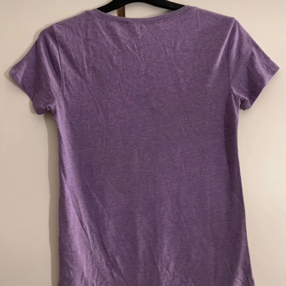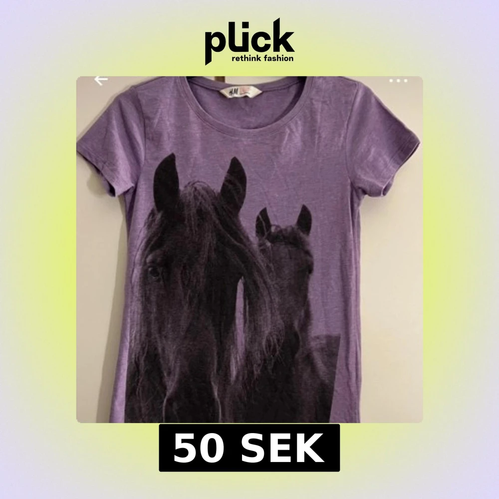 Lila t-shirt från H&M med stort svart tryck av två hästar på framsidan. Klassisk rund halsringning och korta ärmar. Mjuk och skön i bomull, perfekt för dig som gillar hästar och vill sticka ut med en cool printad tee.