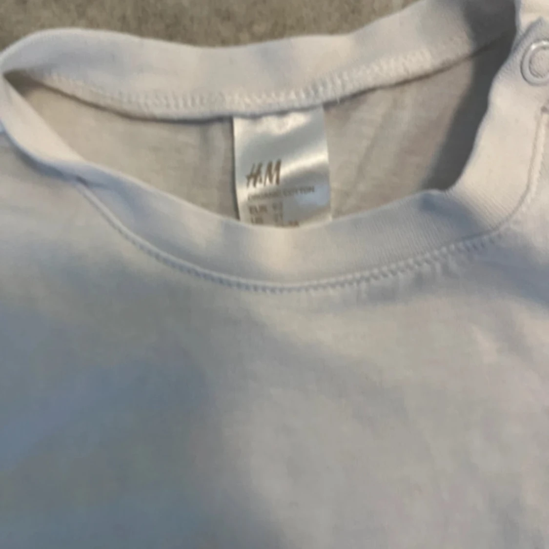 Säljer en enkel och stilren vit t-shirt från H&M. Den har korta ärmar och en rund halsringning med knappdetalj vid axeln. Perfekt basplagg för alla tillfällen.
