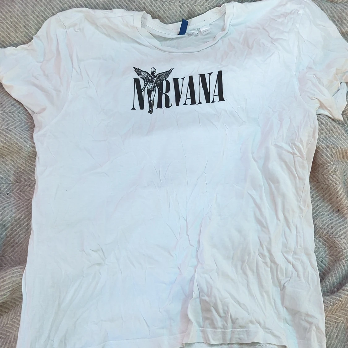 Vit nirvana t-shirt från hm Nirvana logga fram till Bild tryck bak till Pris går att pruta
