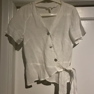Fin omlått t-shirt/topp i linen material med pärlaktiga knappar. Använt endast en gång. Storleken är i L men passar som M