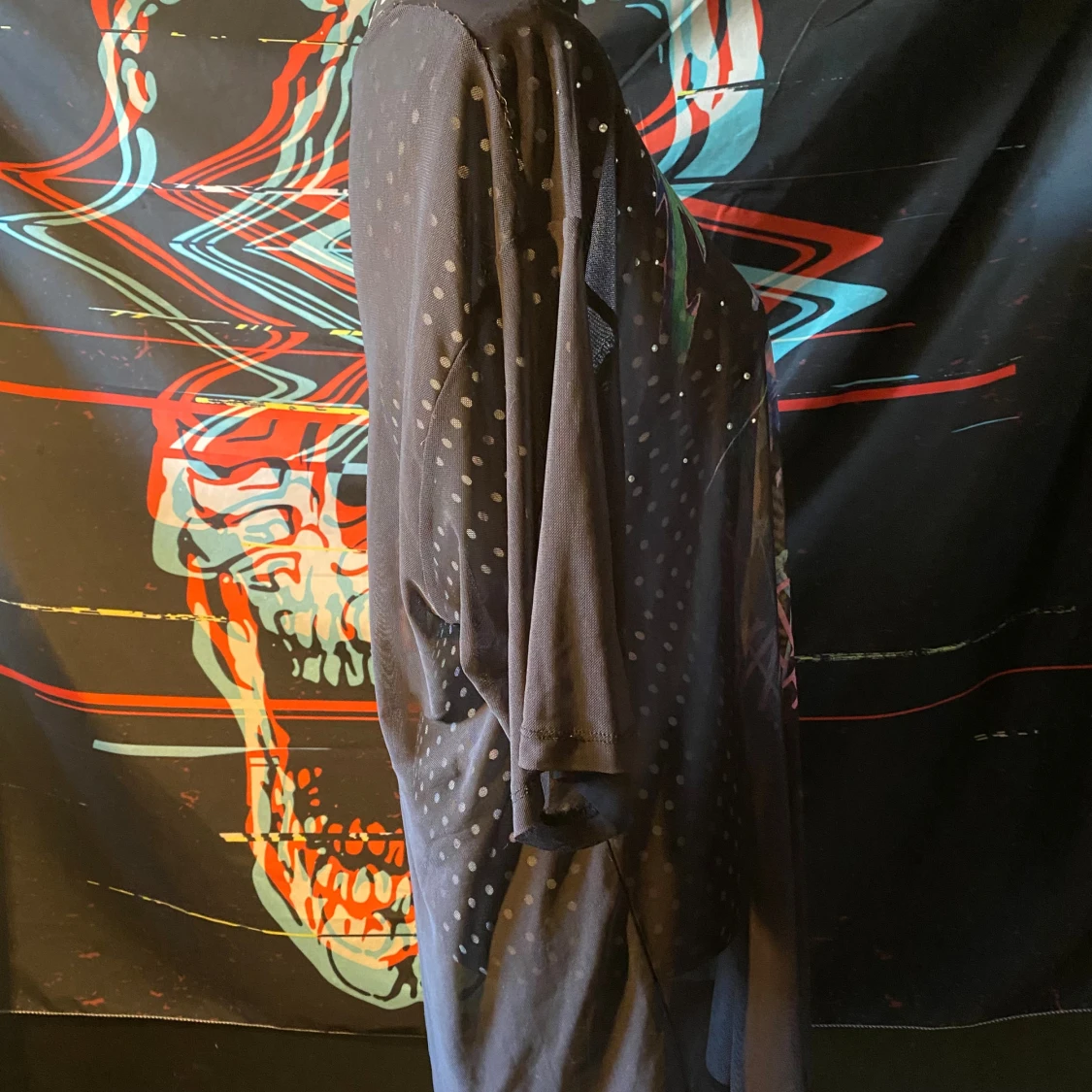 Lång t shirt, genomskinlig. Den är bra och sitter bra på. Men har allergi på mig den