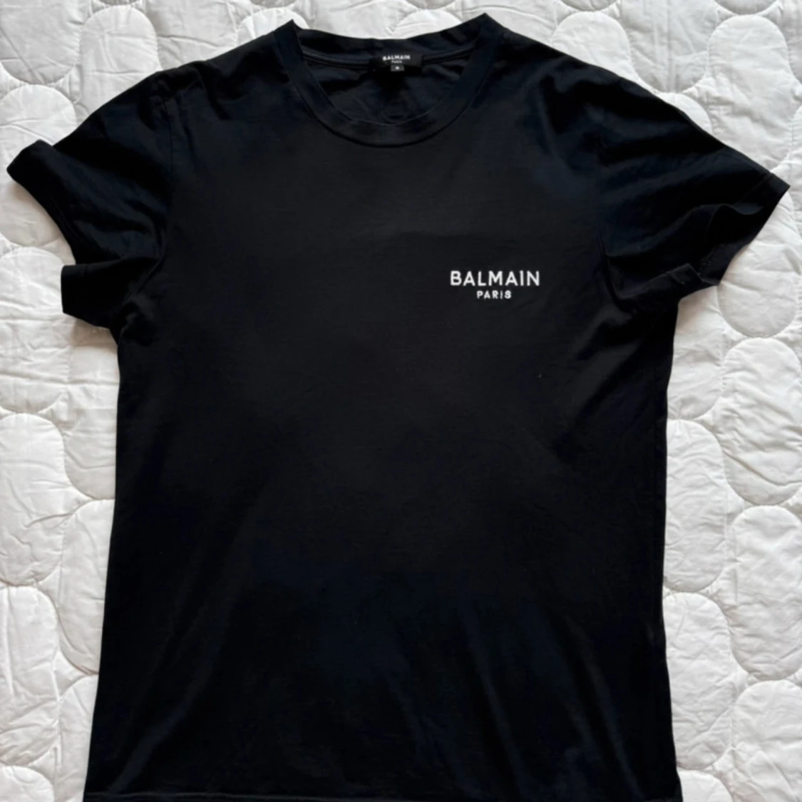 Svart t-shirt från Balmain Paris i mjuk bomull. Klassisk passform med rund hals och korta ärmar. Balmain är 100% äkta kvitto finns kom privat för de! Extremt lyxigt och bra kvalité på materialet!