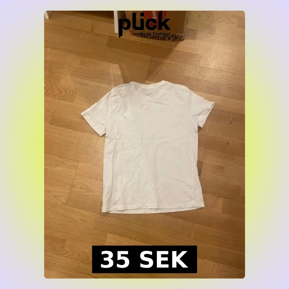 En enkel vit t-shirt med korta ärmar och rund hals. Modellen är klassisk och passar perfekt till jeans eller shorts. Materialet är mjukt och skönt bomull, vilket gör den bekväm att bära hela dagen. Perfekt för dig som gillar en clean och stilren look.