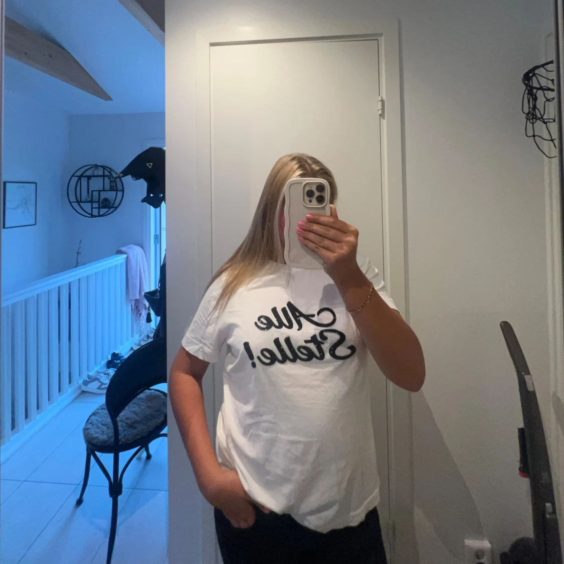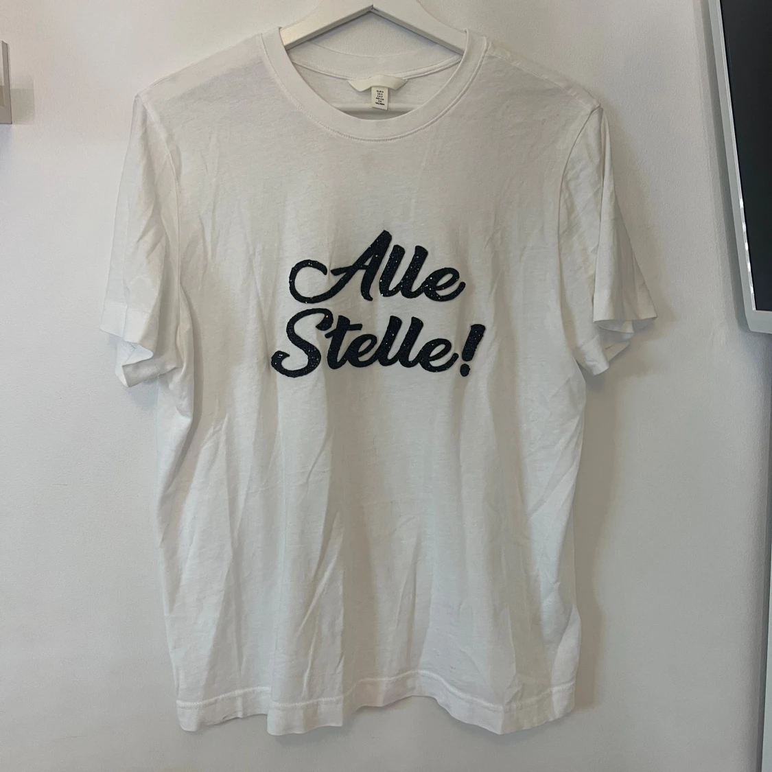 Super fin fin t-shirt från H&M med svart texten 'Alle Stelle!' tryckt på bröstet🌸 Klassisk rund hals och korta ärmar. Skön och enkel modell som passar perfekt till jeans eller shorts.