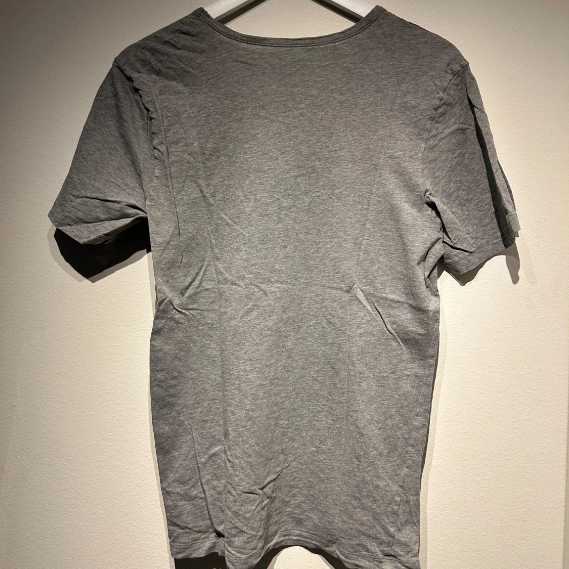 Snygg grå t-shirt från Hugo Boss i mjukt material. Den har en diskret logga på bröstet och rund halsringning. Perfekt för en avslappnad stil.