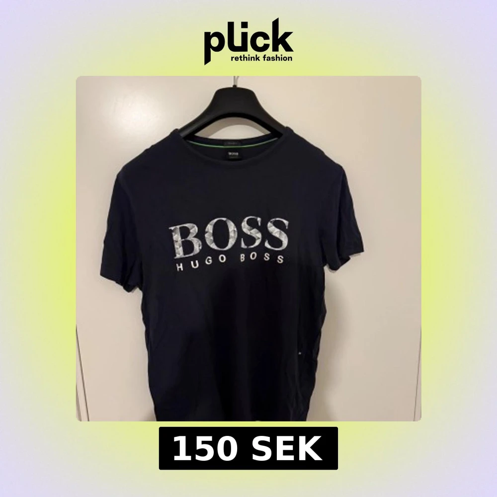 Snygg mörkblå t-shirt från Hugo Boss med stor vit logga framtill. Klassisk rund halsringning och korta ärmar. Tillverkad i mjuk bomull som känns skön mot huden. Perfekt för dig som gillar stilrena och trendiga plagg med tydlig branding. Äkta såklart