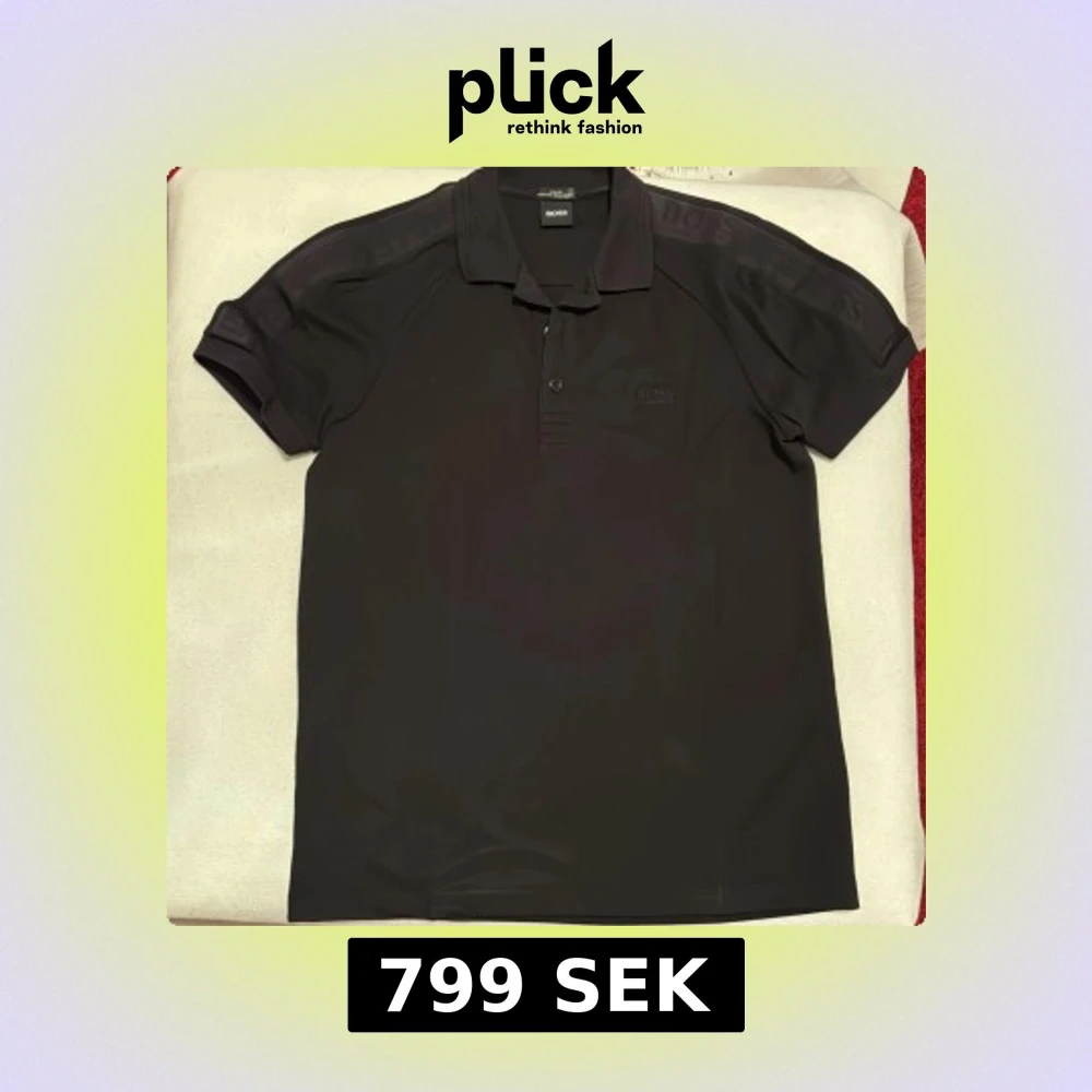 Använd 2 gånger och tar just nu plats i garderoben. Snygg svart pikétröja från Hugo Boss med korta ärmar och klassisk krage. Tröjan har en diskret logga på bröstet och är tillverkad i ett material med fuktreglering för extra komfort. Perfekt för en stilren look.