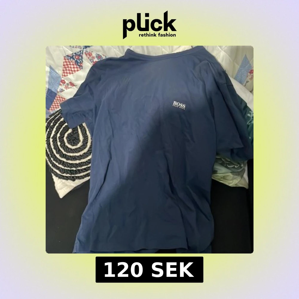 Säljer en stilren blå t-shirt från Hugo Boss med logotypen tryckt på bröstet och nacken. T-shirten har en normal passform och är kortärmad, perfekt för en avslappnad look.