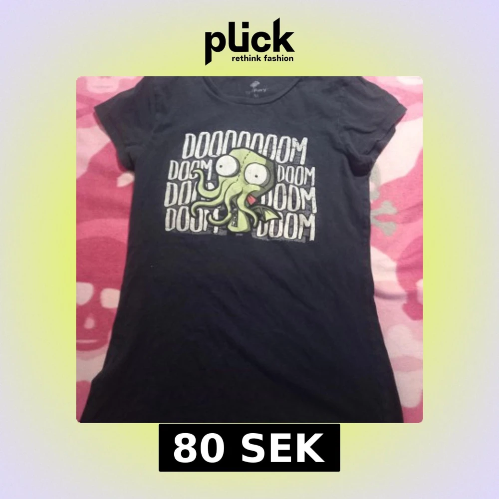 Trycket är ganska slitet som man kan se på sista bilden. Jättefin passform. Typ en blandning av marinblå och svart.