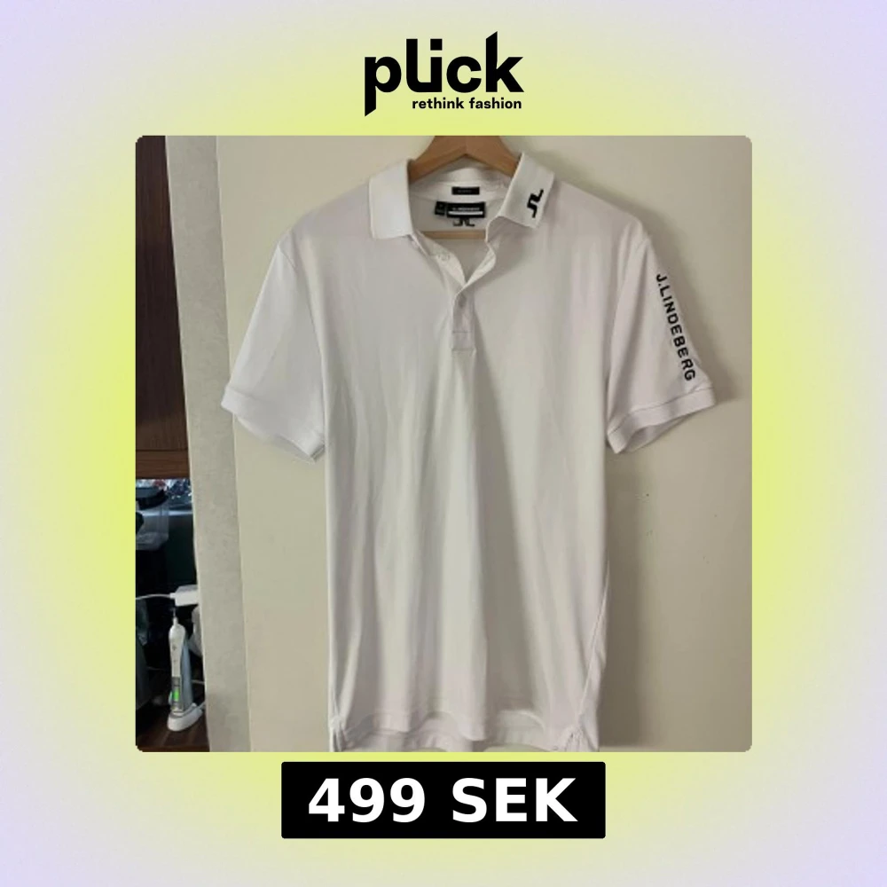 Vit pikétröja från J.Lindeberg i nyskick med svart logga på kragen och ärmen. Klassisk krage med knappar och korta ärmar. Tillverkad i mjuk bomull, perfekt för en clean och sportig look.