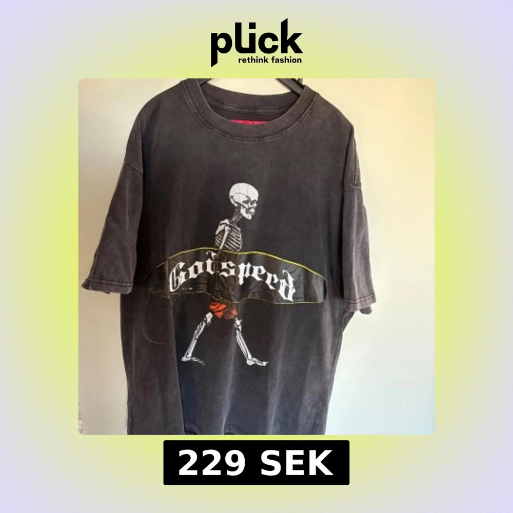 Cool svart t-shirt från Godspeed med stort skelettmotiv och text på framsidan samt stor vit grafisk print på ryggen. Oversized fit och tillverkad i mjuk bomull. Perfekt statement-plagg för dig som gillar streetwear och unika prints.