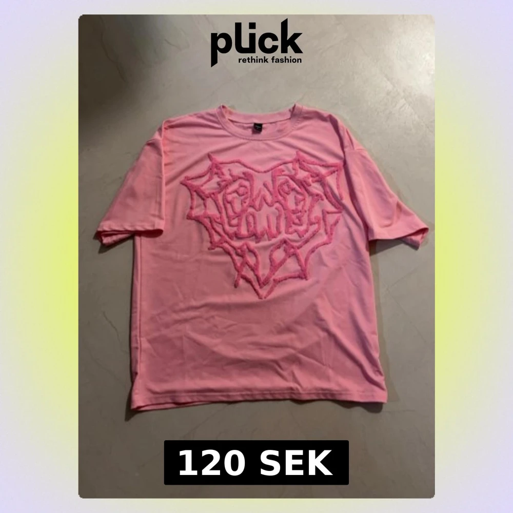Rosa t shirt med tryck i storlek L, ganska stor i storlek. Oanvänd