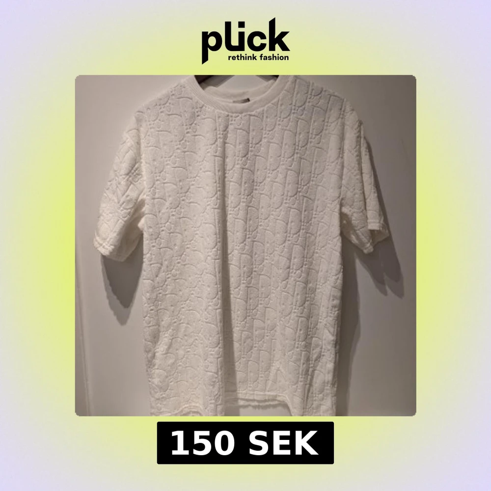 Snygg vit t-shirt med ett subtilt, upphöjt mönster över hela tyget. Perfekt för en stilren och modern look. T-shirten har korta ärmar och en rund halsringning. Storlek L