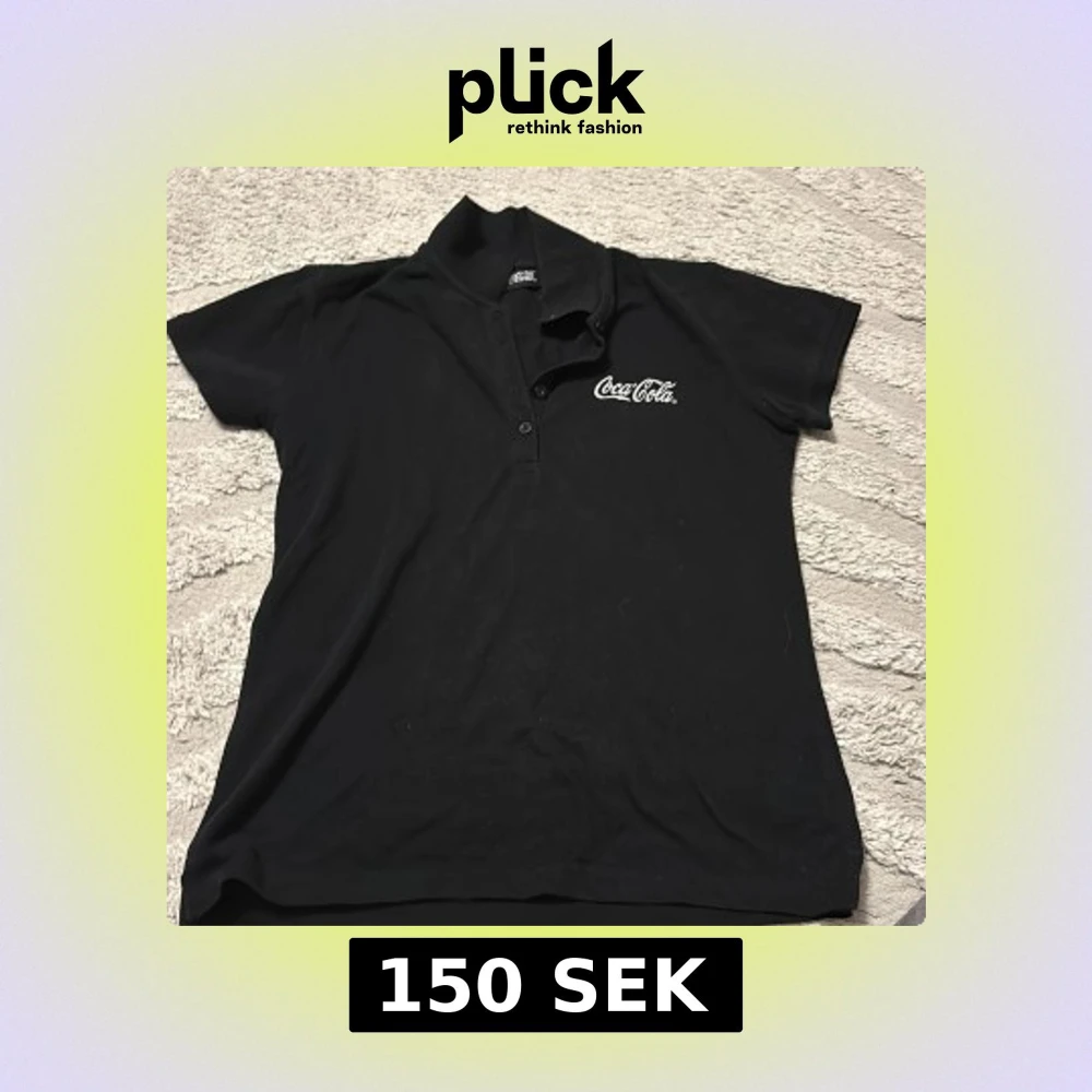 Svart t-shirt från Coca-Cola med klassisk pikékrage och tre knappar framtill. T-shirten har korta ärmar och en vit Coca-Cola-logga broderad på bröstet. Perfekt för dig som gillar retro vibes och streetstyle.
