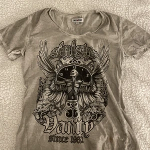 Cool t-shirt  - Oversized t-shirt med coolt motiv  Bra skick, använd en gång.  Är i xxs skulle passa xxs-s eftersom den är oversized
