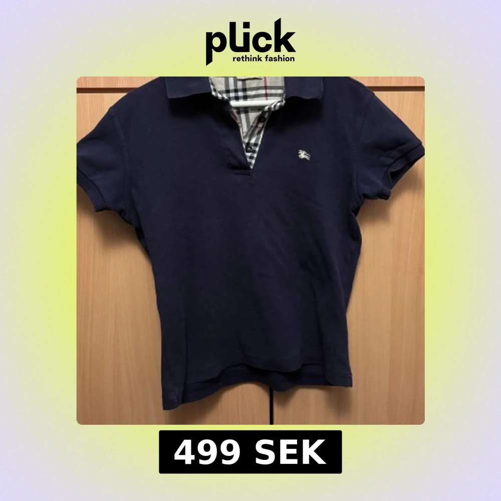 Säljer en snygg mörkblå kortärmad t-shirt från Burberry. Det står att den är i XL men passar storlek S.. Den har en stilrent rutigt mönster på insidan och en liten broderad logga på bröstet. Tillverkad i 100% bomull för en bekväm känsla. Perfekt för en stilren look!