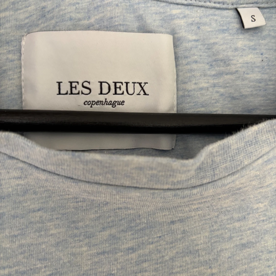 Ljusblå t-shirt från Les Deux med diskret melerad look och liten röd broderad II-logga på bröstet. Klassisk rund hals och korta ärmar. Mjuk och skön bomull som passar perfekt till jeans eller shorts. Enkel och stilren design från Köpenhamn.