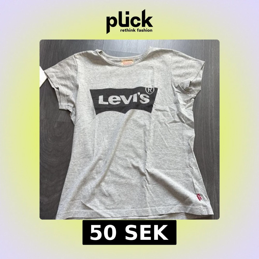 Säljer en grå t-shirt från Levi's med deras logga tryckt i svart på framsidan. T-shirten är kortärmad och tillverkad i bomull. Tröjan är väl använd men ingenting som syns, är väldigt oklar på storlek då det inte står, men skulle säga att de är runt stl 164