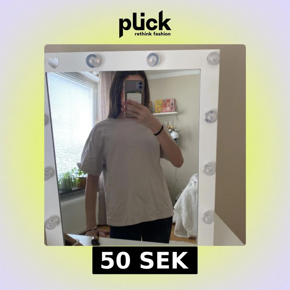 En basic beige t-shirt med rund hals och korta ärmar. Modellen är något oversized.