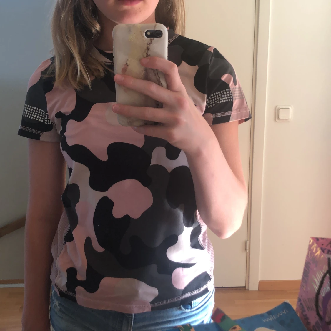 En tränings tröja som är kamoflerad med färgerna: Rosa, grå och svart! Har små reflexer på ärmarna och en liten text där det står: Stay Active