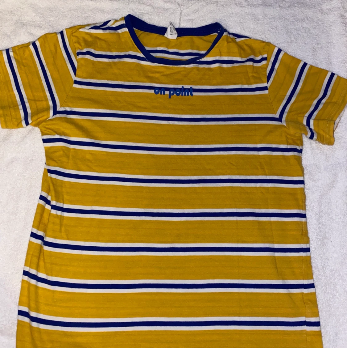 Snygg gul tshirt med blå ränder i stl 146/152. Fint skick!
