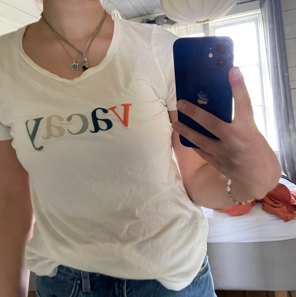 Bomull t-shirt, väldigt luftig, tunn, väldigt skön.