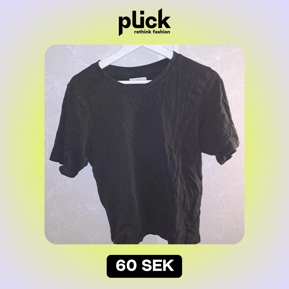 Säljer en klassisk svart t-shirt från Lindex i storlek M. Den är i bra skick och perfekt för vardagsbruk. T-shirten är kortärmad och gjord av mjukt material som känns skönt mot huden. Passar till alla tillfällen och är lätt att matcha med andra plagg.😊