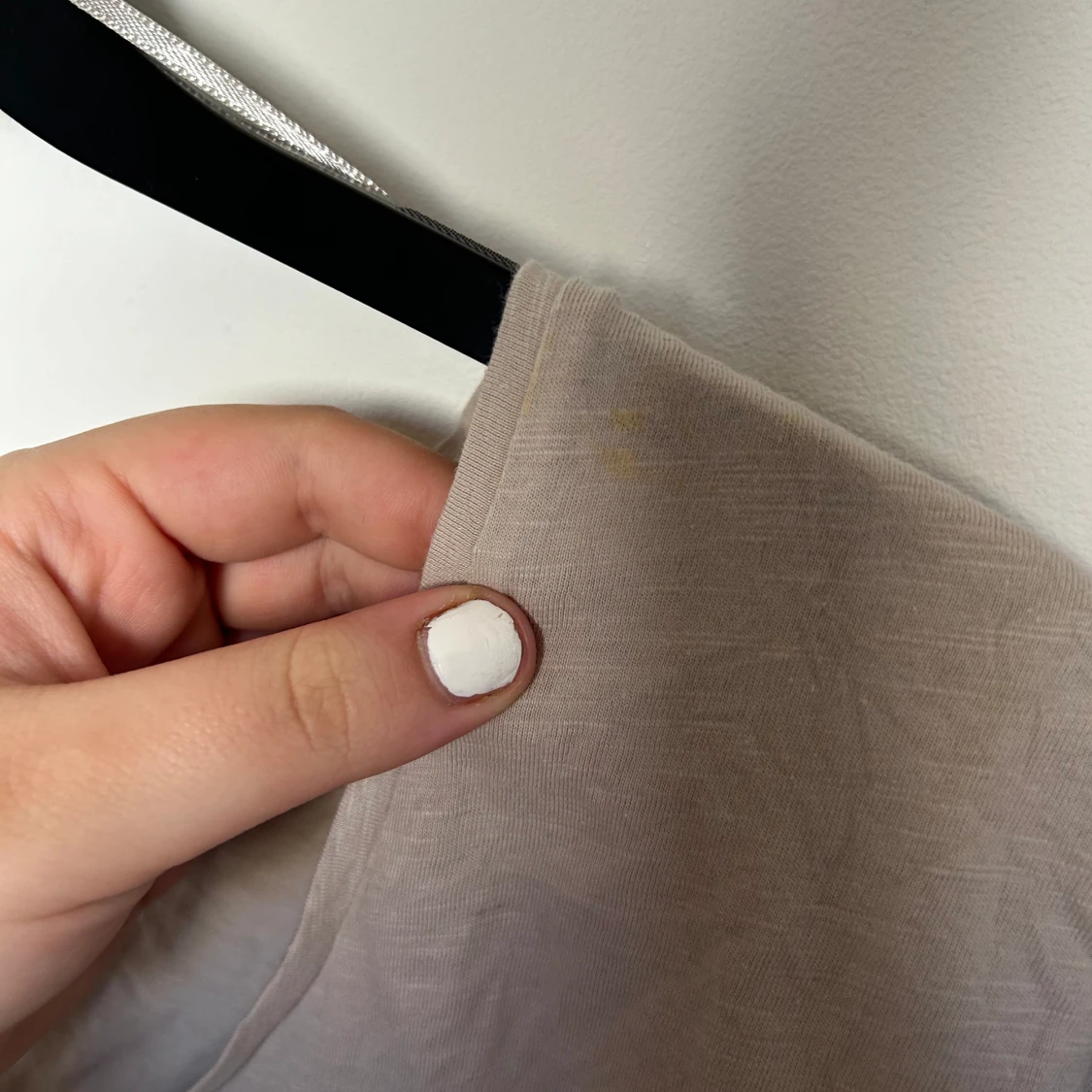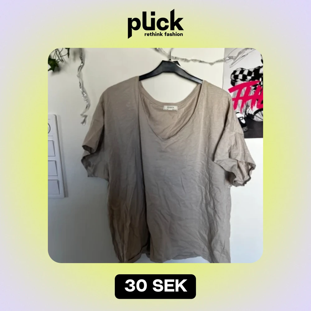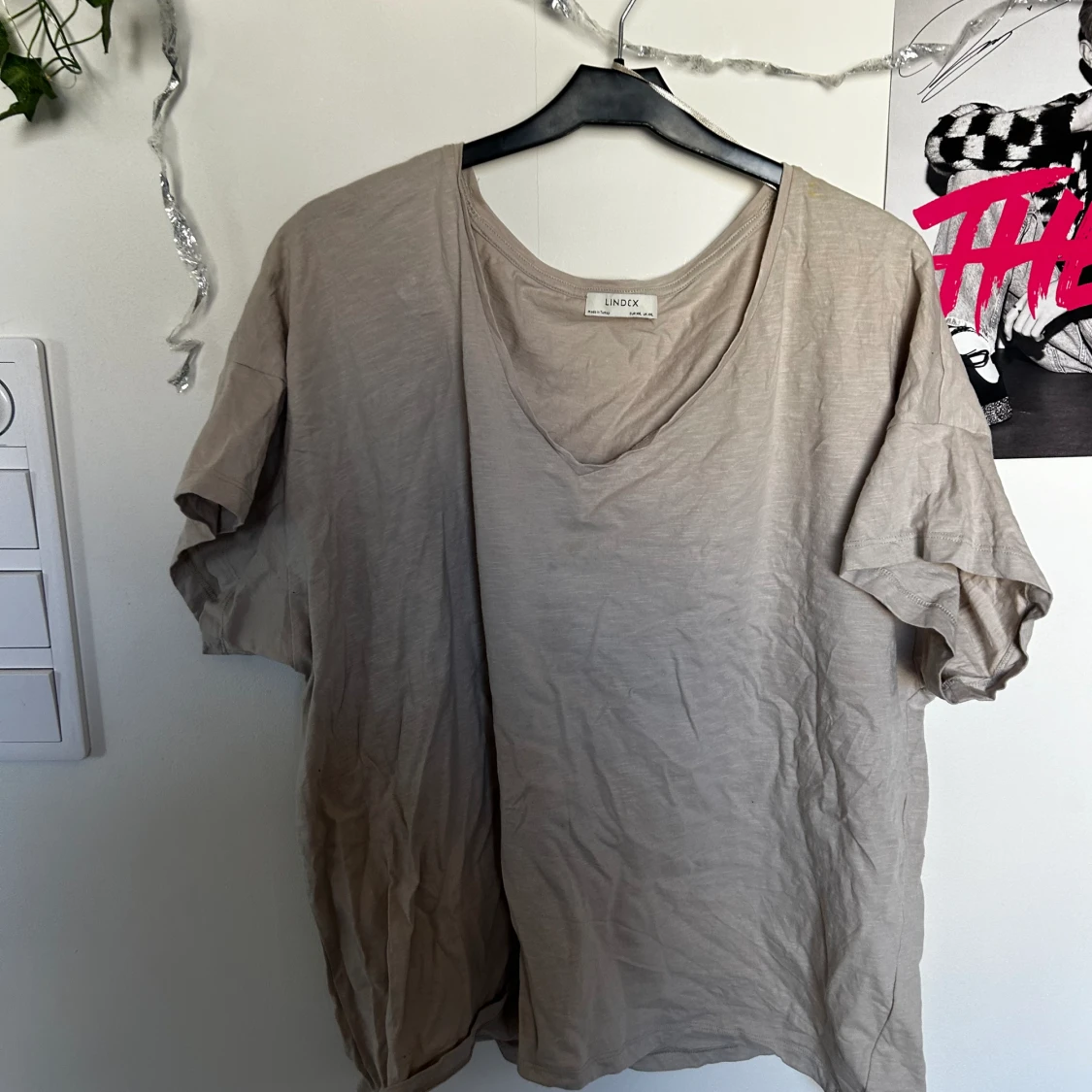 Hej! Säljer en beige T-shirt eftersom jag inte använder den💛 den har en liten fläck vid halsen arnars som ny💞