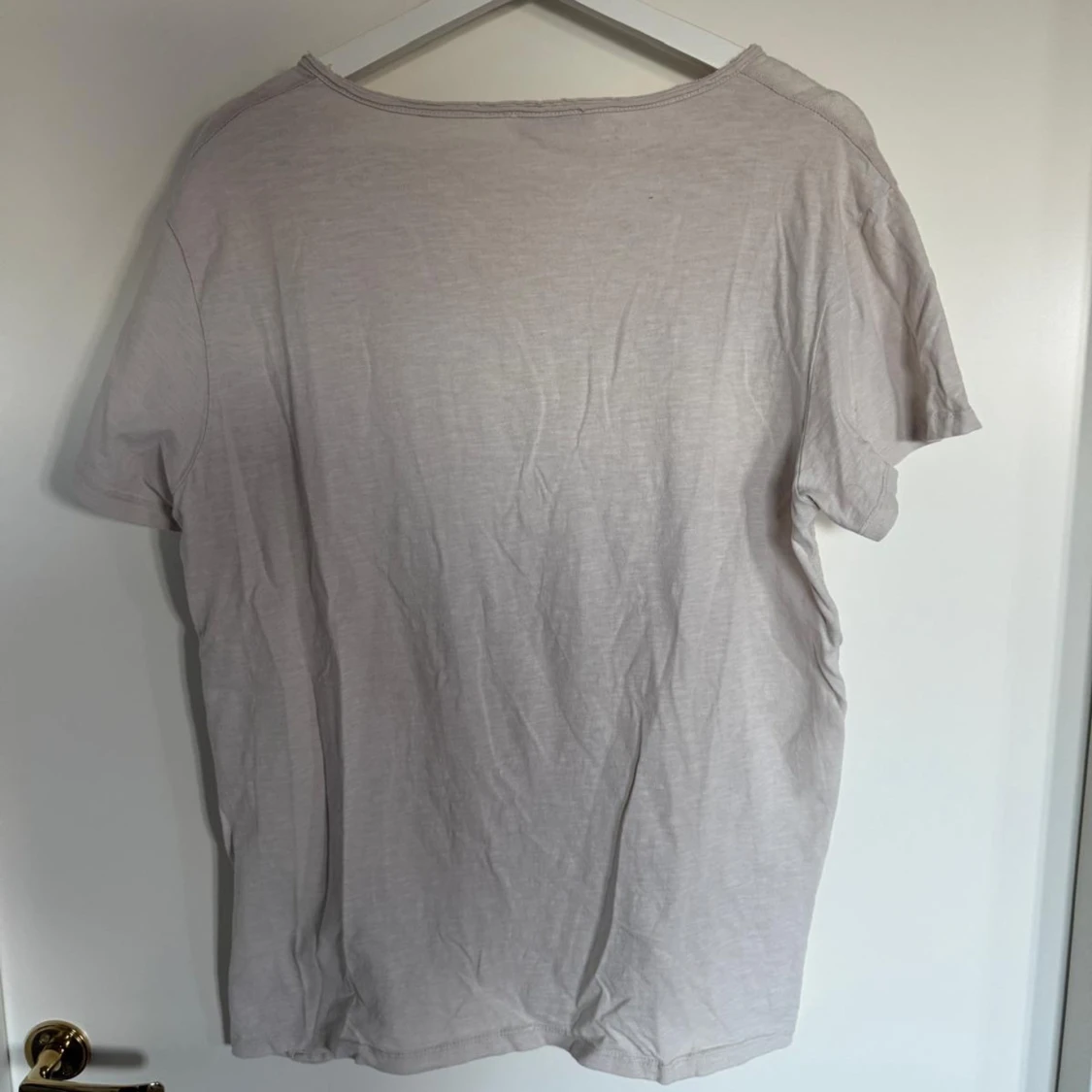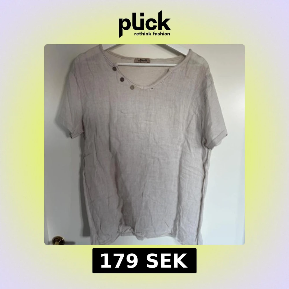 Säljer en beige bohemisk t-shirt med unik knappdetalj. T-shirten har en avslappnad passform. Perfekt för en stilren och enkel look.