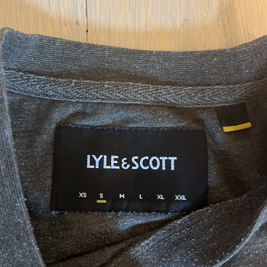 En enkel men väldigt snygg Lyle & scott T-shirt. Den är lite grå/grön och i storlek S. Den är också i väldigt bra skick!