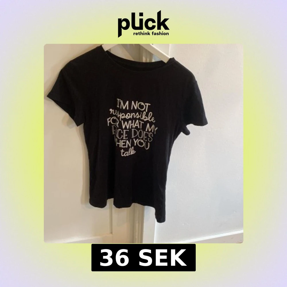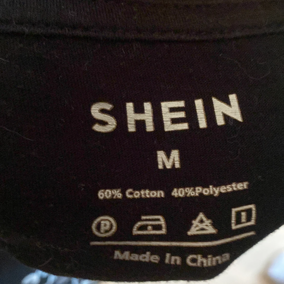 Svart t-shirt från SHEIN i storlek M med vit tryckt text på framsidan: 'I'M NOT responsible FOR WHAT MY FACE DOES WHEN YOU talk'. T-shirten är i mjuk bomulls- och polyestermix och har klassisk passform med korta ärmar och rund hals.