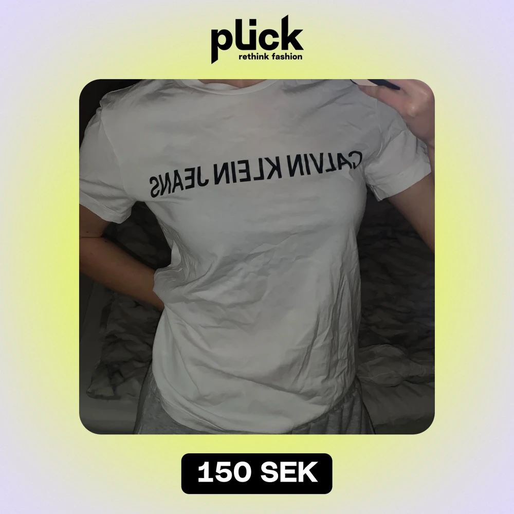 Säljer en vit t-shirt från Calvin Klein Jeans. Den har en normal passform och korta ärmar. T-shirten är i bomull och har märkets logga tryckt i svart på framsidan.