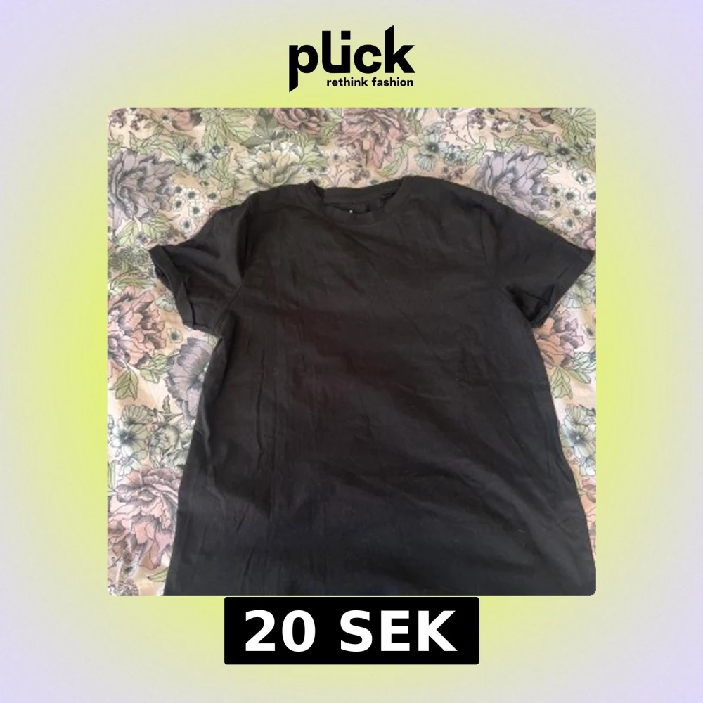 Säljer en klassisk svart t-shirt med korta ärmar. Perfekt basplagg för alla tillfällen. Enkel och stilren design. Finns två små små hål, knappt synliga! Påverkar ej funktionen. Finns katt och hund i hemmet, tvättas innan den skickas.