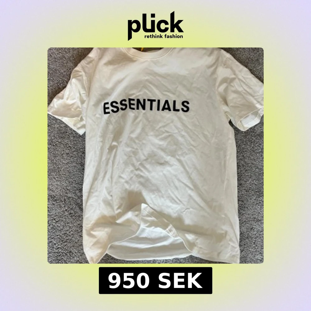 Vit t-shirt från Essentials med svart tryck på bröstet. Klassisk rund halsringning och korta ärmar. Tillverkad i mjuk bomull för en skön känsla. Perfekt basic-plagg med clean look och oversized passform.