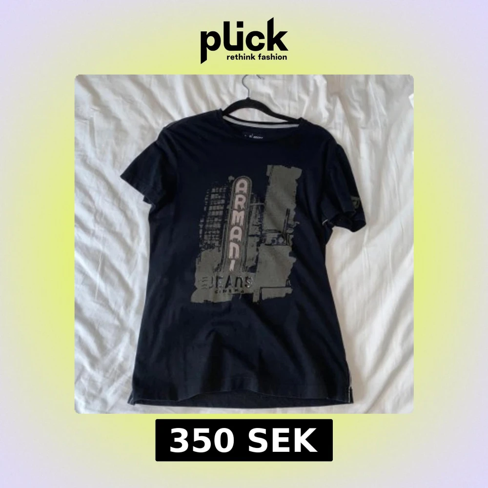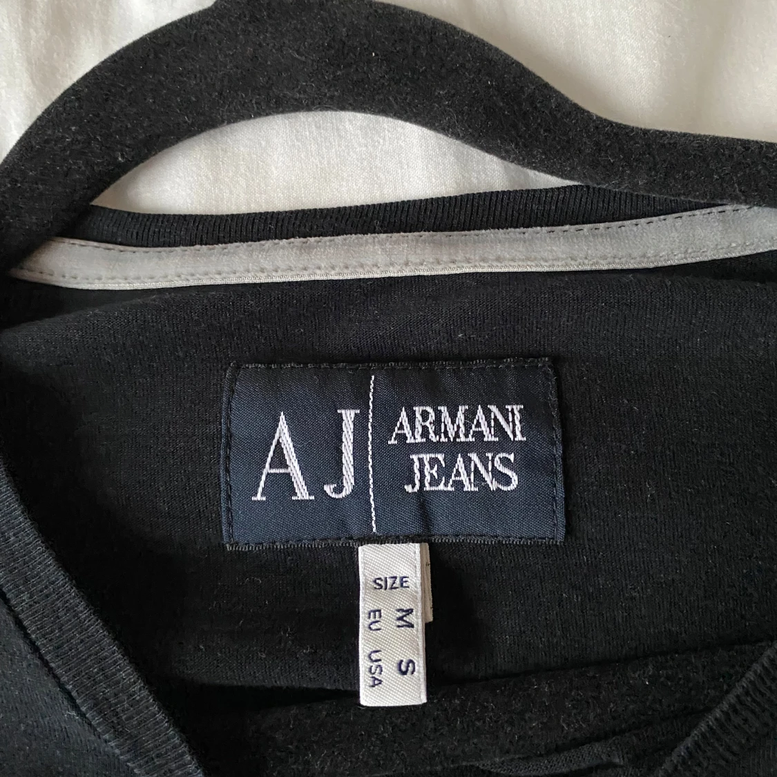 Snygg svart t-shirt från Armani Jeans med ett coolt tryck på framsidan. T-shirten har korta ärmar och en rund halsringning. Perfekt för en stilren och avslappnad look. Dena t shirt är exclusive