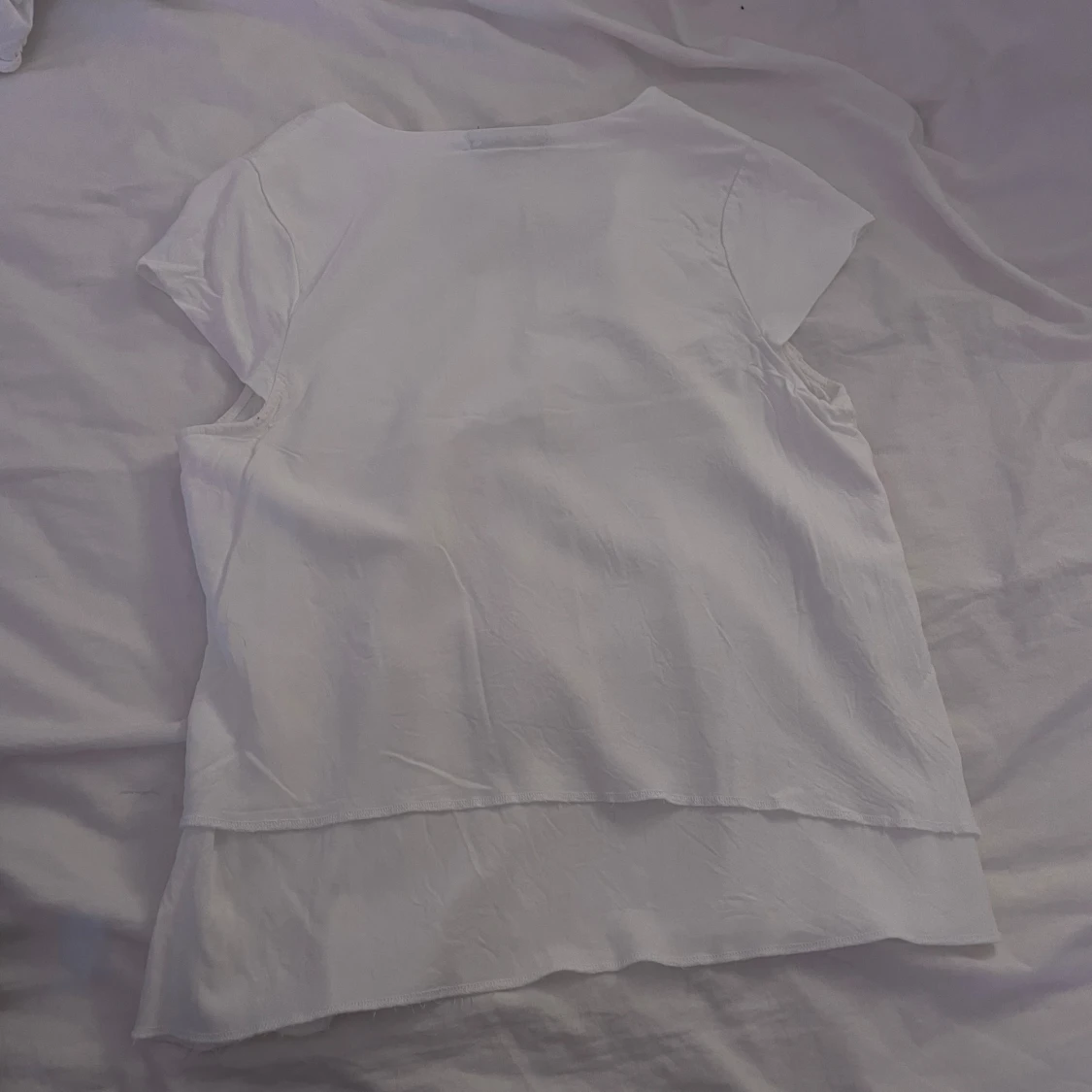 En vit T-shirt med snygg volang detalj framtill. Den är använd några gånger! 💗