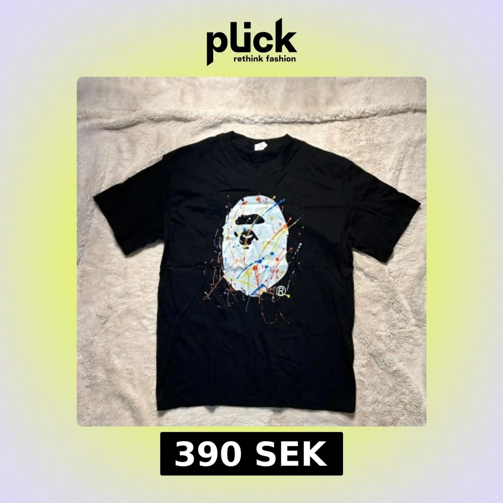 Svart t-shirt från Bape med stort ikoniskt apansikte på bröstet i storlek M ✅skriv för frågor , mått eller mer bilder ✅
