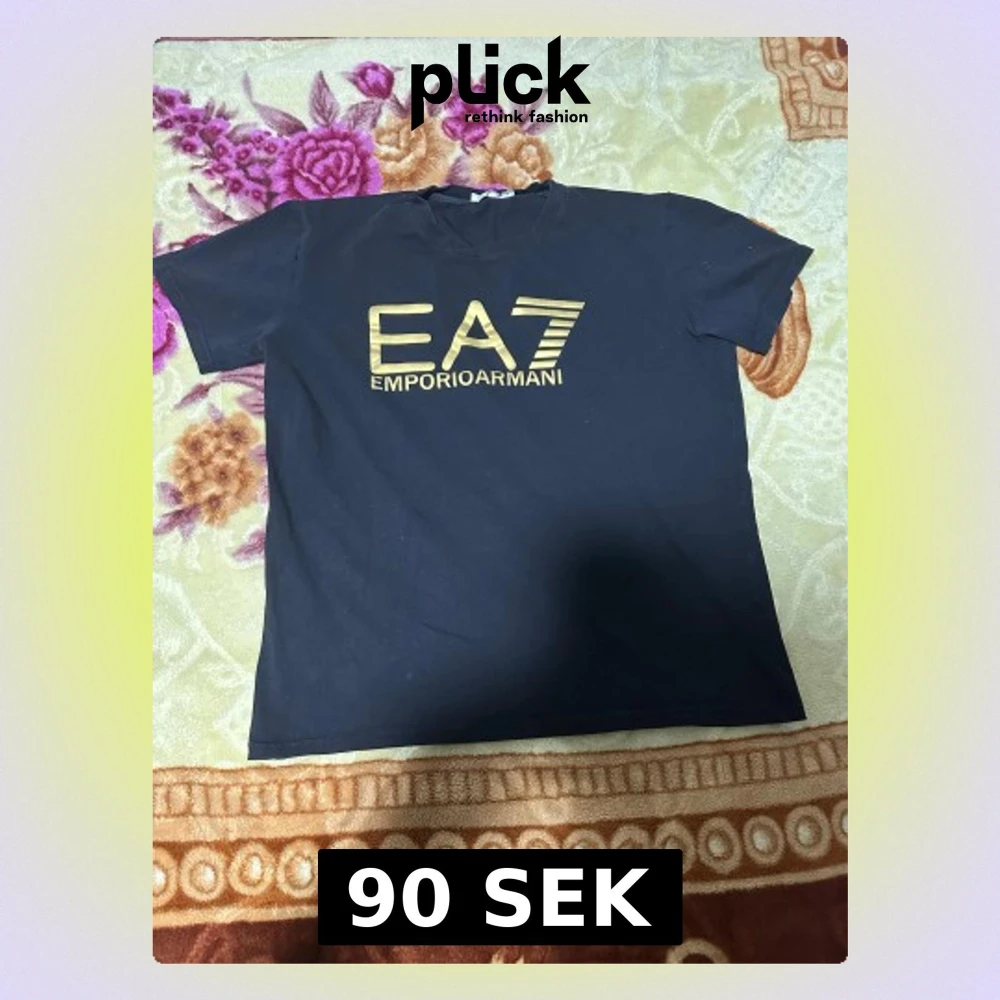 Svart t-shirt från EA7 Emporio Armani med guldig logga framtill. Klassisk passform med rund hals och korta ärmar. Tillverkad i mjuk bomull som känns skön mot huden. Perfekt för dig som gillar stilrena och exklusiva plagg.