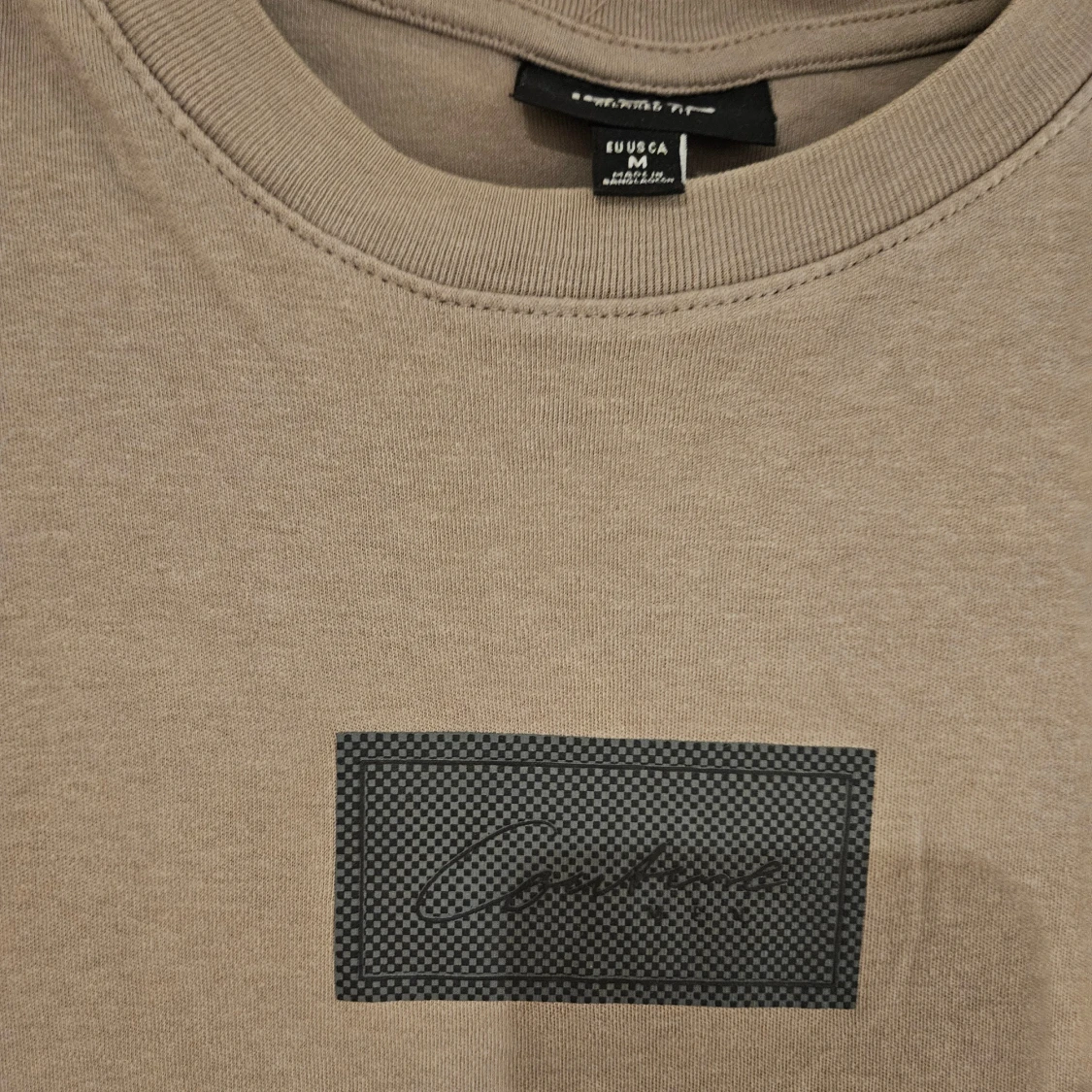 Snygg mullvadsfärgad t-shirt från Icono i relaxed fit. T-shirten har ett svart rutigt tryck med logga på bröstet och klassisk rund hals. Tillverkad i mjuk bomull och har korta ärmar. Perfekt för en chill och stilren look.
