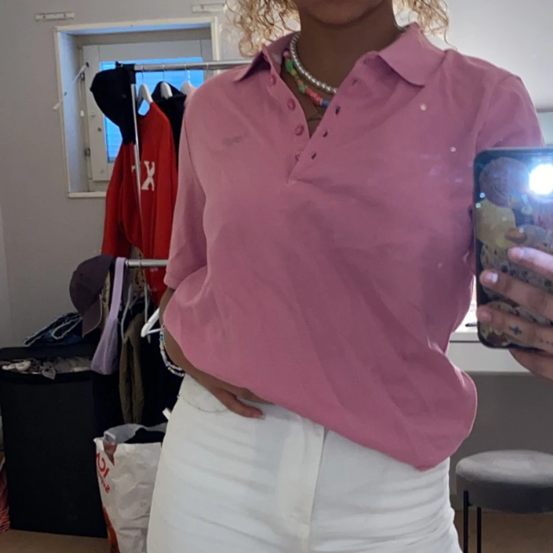 Pikétröja i fin rosa färg från M.X.O med en fjäril på vänster sida.