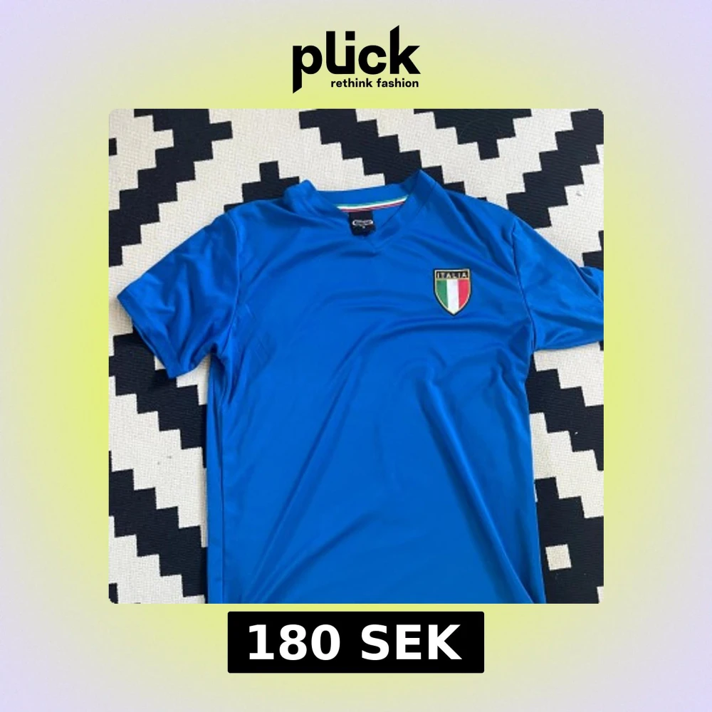 Snygg blå fotbollströja från Infinity i storlek M med Italiens emblem på bröstet och 'ITALIA' tryckt på ryggen. Tröjan har V-ringad krage med en randig detalj i italienska flaggans färger. Tillverkad i lätt och skönt syntetmaterial, perfekt för match eller träning.
