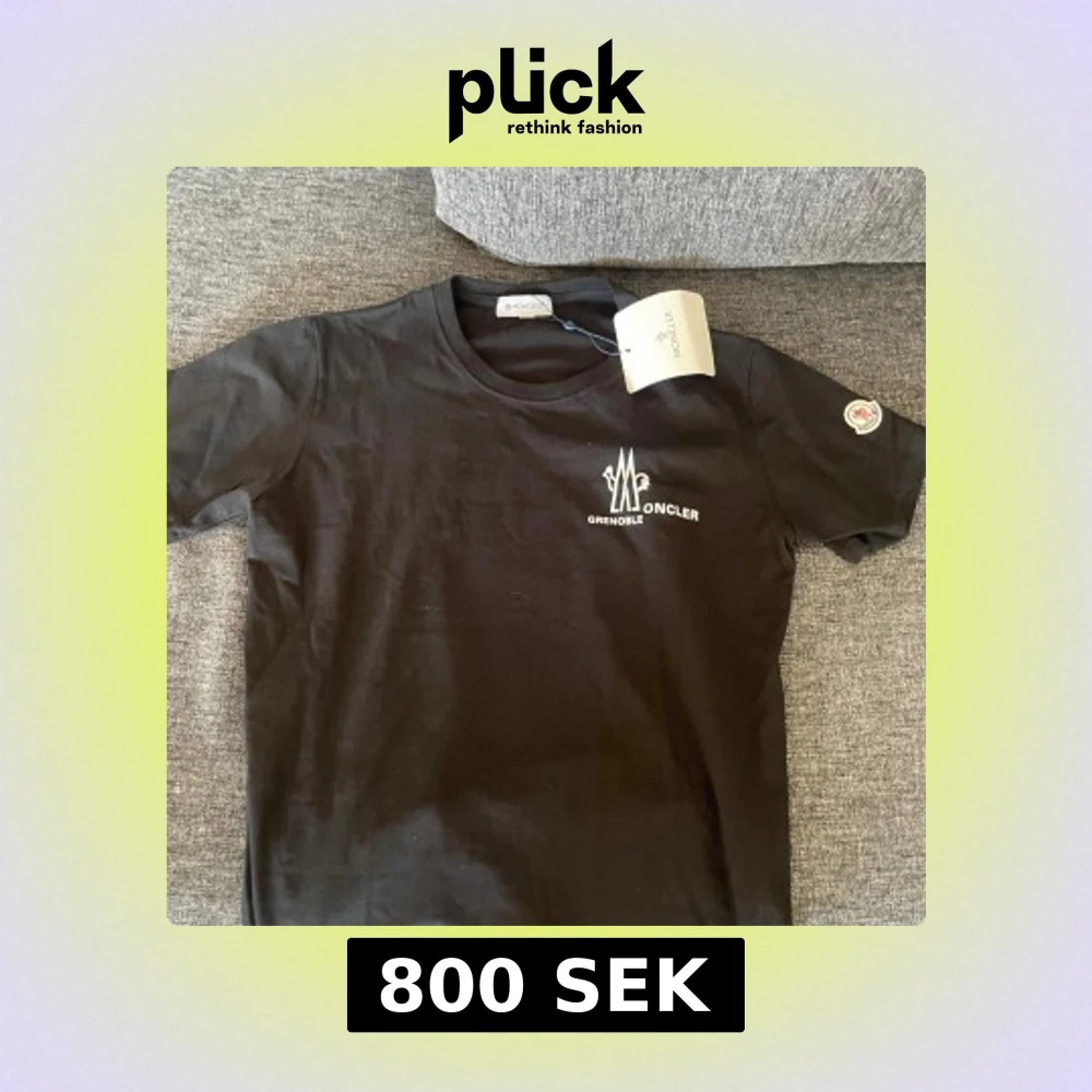 Säljer en svart t-shirt från Moncler Grenoble med vit logga tryckt på bröstet och Moncler-märke på ärmen. Klassisk rund hals och korta ärmar. Perfekt för en stilren och enkel look. Storlek M men passar S lika fint