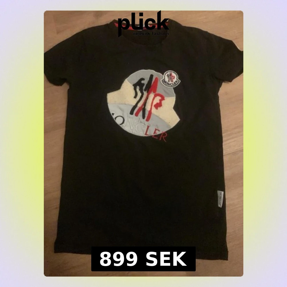 Svart t-shirt från Moncler med stor broderad logga i vitt, rött och blått på bröstet samt mindre logotyp på ärmen. Rund hals och korta ärmar. Materialet är mjuk bomull och passformen är normal. Perfekt för dig som gillar streetwear och vill sticka ut med en ikonisk design.