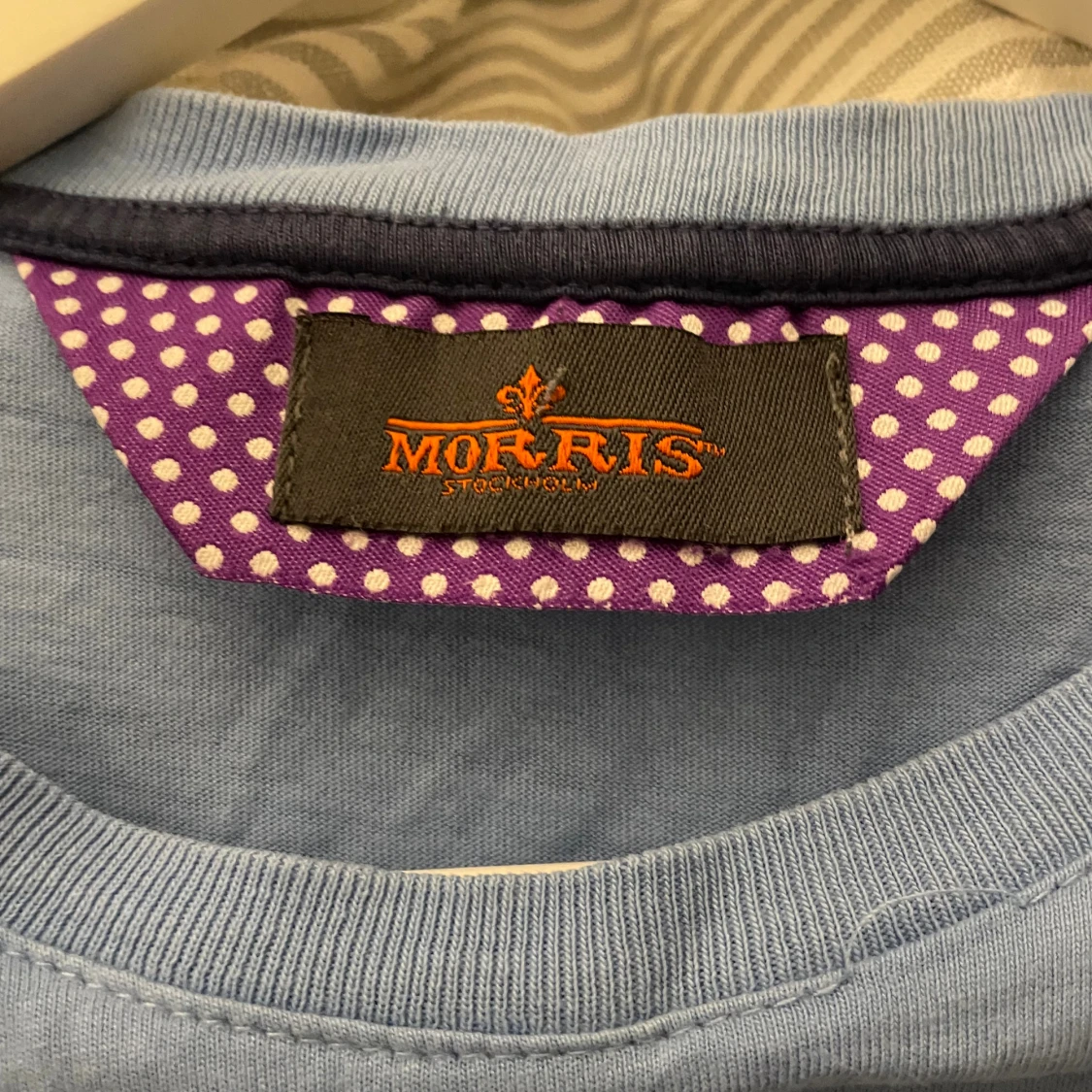 Snygg ljusblå t-shirt från Morris med diskret logga broderad på bröstet. Klassisk rund hals och korta ärmar. Mjuk bomullskvalitet som känns skön mot huden. Perfekt för dig som gillar stilrena och enkla plagg med en touch av premium.