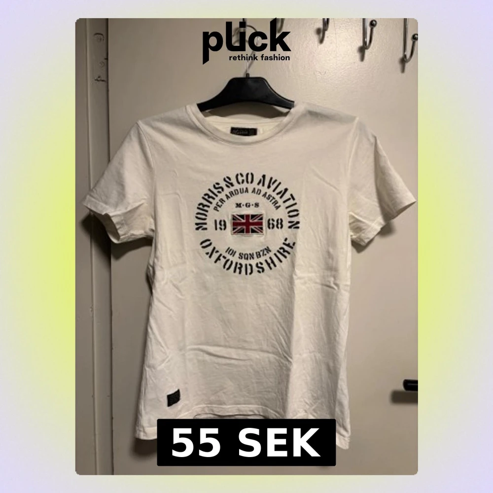Snygg vit t-shirt från Morris med rund hals och tryck framtill som har brittisk flagga och texten 'Morris & Co Aviation Oxfordshire'. Klassisk passform och mjukt bomullsmaterial, perfekt till jeans eller shorts.