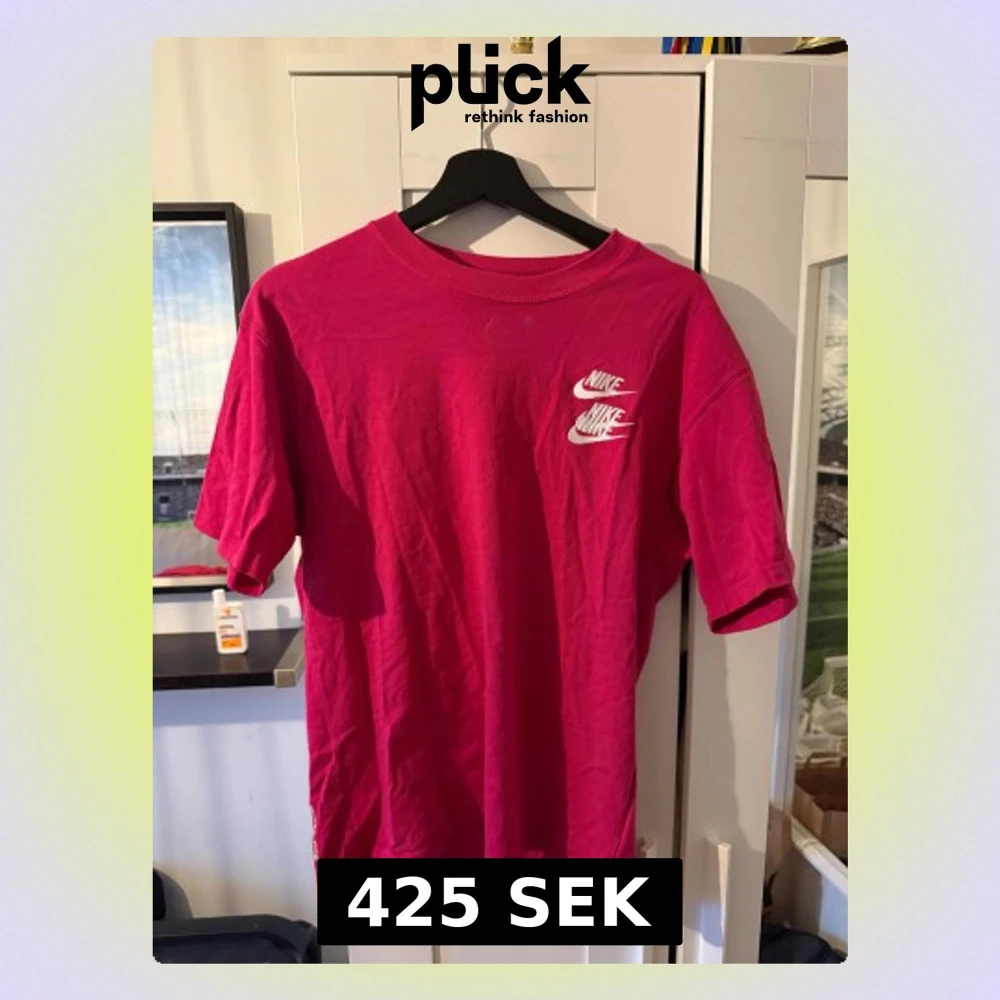 Säljer en snygg rosa t-shirt från Nike med tryck på både fram- och baksidan. Framtill finns dubbla vita Nike-loggor och på ryggen står det 'Worldtour' med flera storstäder listade. T-shirten har rund hals och korta ärmar, perfekt för dig som gillar streetwear.