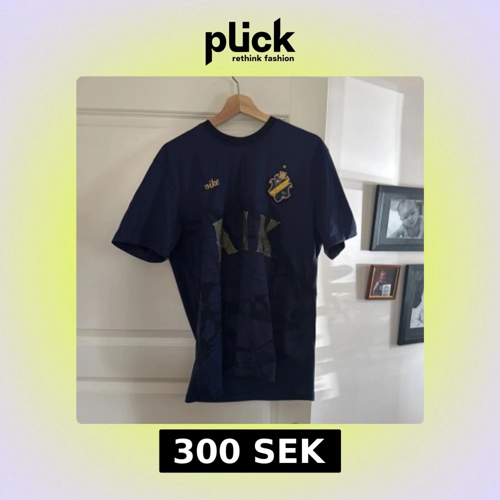 Säljer en blå AIK fotbollströja från Nike med korta ärmar. Tröjan har AIK:s emblem på bröstet och namnet 'Guidetti' med nummer 11 på ryggen. Den har ett unikt mönster i tyget och är perfekt för alla AIK-fans.